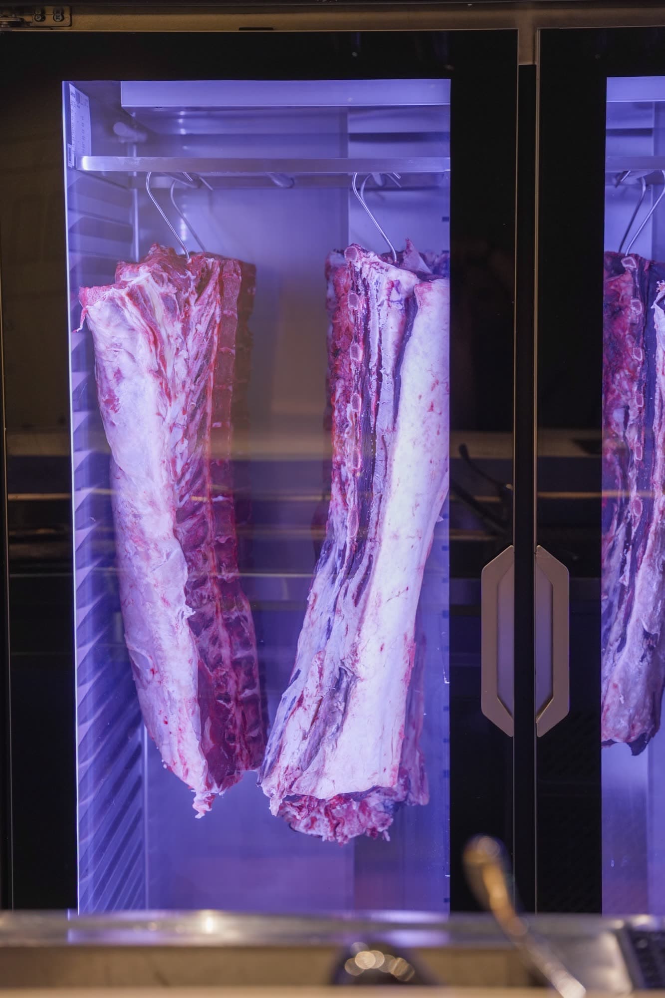 Svaki steak koji serviramo počinje izborom — mnogo pre nego što meso stigne u našu kuhinju. Obilazimo farme, upoznajemo dobavljače lično, insistiramo na potpunoj transparentnosti porekla. Biramo isključivo vrhunsko meso koje prolazi našu strogu selekciju: japanski Wagyu A5 direktno iz prefekture Mijazaki, urugvajski angus sa otvorenih pašnjaka i domaće srpske rase odgajane sa izuzetnom posvećenošću. Svaki rez koji prođe našu proveru ulazi u komoru za suvo zrenje — dry-aged proces koji traje od 45 do 200 dana, gde vreme i kontrolisani uslovi otkrivaju dubinu ukusa koju svež rez ne može da pruži. Naš standard nije visok — on je jedini koji postoji.